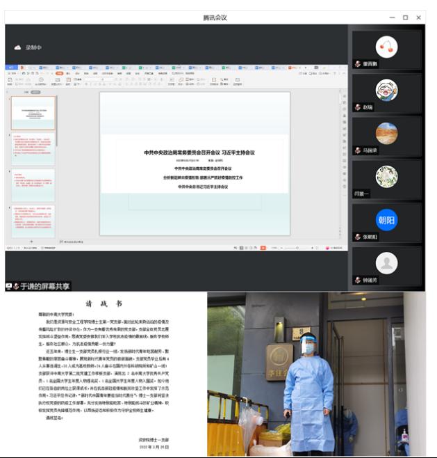 博士一支部开展“我为抗疫做贡献”主题党日活动,受疫情影响,活动采用线上形式进行。活动邀请了院党委副书记马国荣及学院2020届毕业生、上海市选调生王钧晖同志参加。