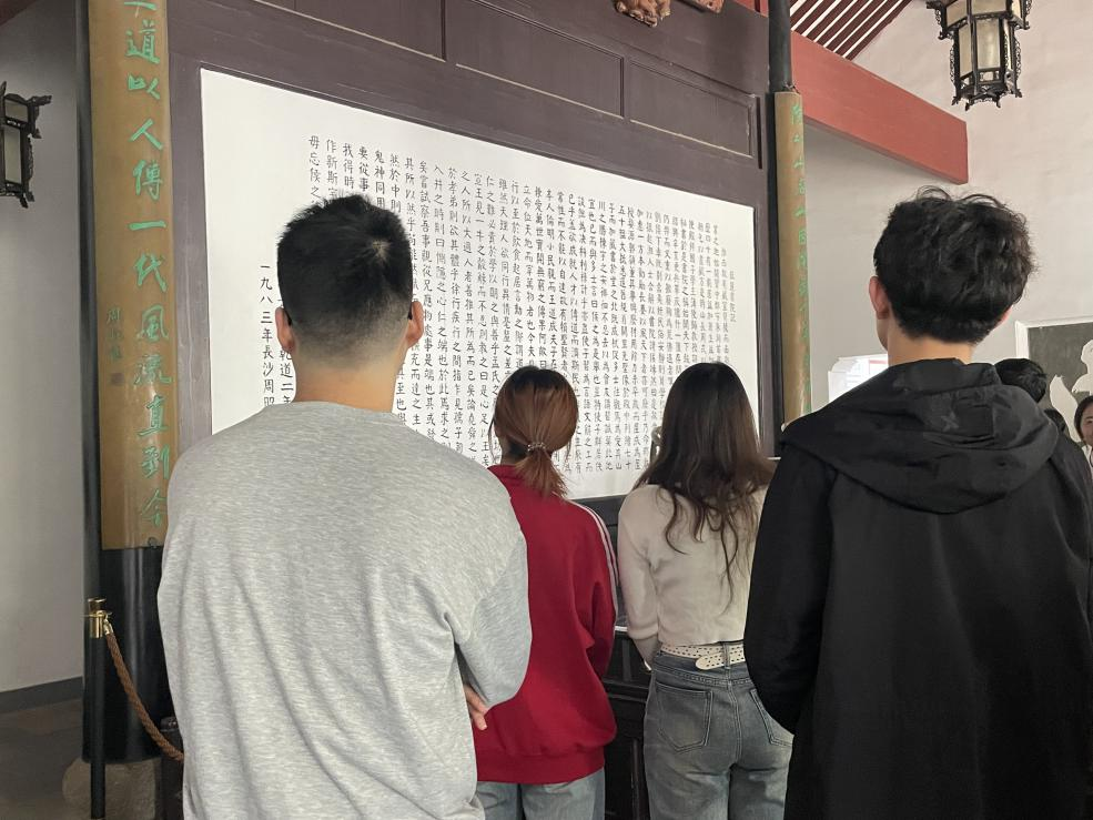 最后,支部党员们来到了湖南大学岳麓书院。“共产党怎么能成功呢?当年在石库门,在南湖上那么一条船,那么十几个人,到今天这一步。这里面的道路一定要搞清楚,一定要把真理本土化。”在岳麓书院考察调研时,习近平总书记望着檐上“实事求是”匾额,久久凝思。党员们参观了讲堂、半学斋和文庙等景点,更加深刻地理解了“实事求是,经世致用”的校训精神,并坚定了为实现中华民族伟大复兴而努力奋斗的决心。