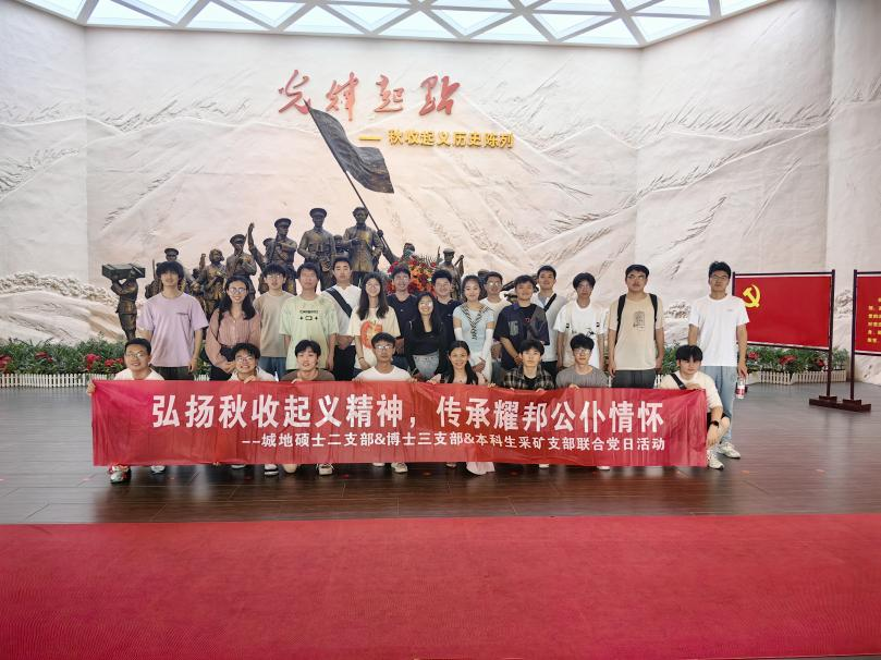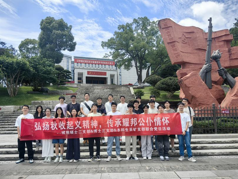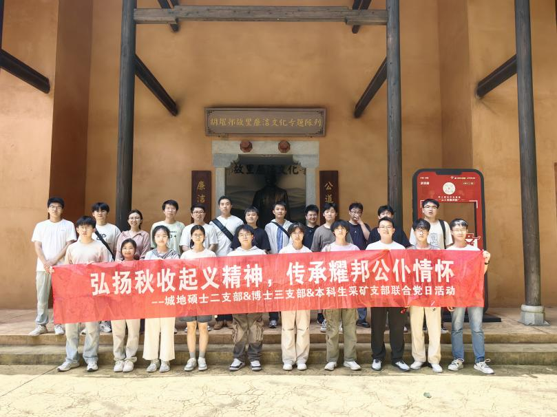 为推进深入贯彻中央八项规定精神学习教育走深走实,6月13日,城地硕士二支部、博士三支部与本科生采矿支部联合开展“弘扬秋收起义精神·传承耀邦公仆情怀”主题党日活动,赴湖南浏阳参观秋收起义纪念馆与胡耀邦故居,通过实地瞻仰和聆听讲解,进一步激发党员师生的历史担当与为民情怀。