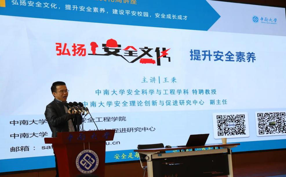 特聘教授王秉老师开展专业讲座。钟竹青主任以自身抗疫经验,向大家讲述着中国制度、中国智慧、中国力量和中国温度,王秉教授以中国传统文化中的安全文化为引,向大家讲述着安全文化的源远流长和弘扬优秀安全文化之必要性。讲座以专业知识为底蕴,案例生动易懂,普及了安全文化知识,弘扬了中南师生不畏艰险,勇于奉献的抗疫精神。