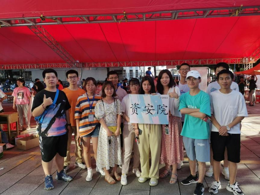 6月5日早上8点,学工办助理将捐赠书籍运输至南校区活动地点,为让同学们快速找到学院摊点,所有工作人员统一佩戴工作牌,并安排一名工作人员在队伍结尾手举“资安院”标志牌。