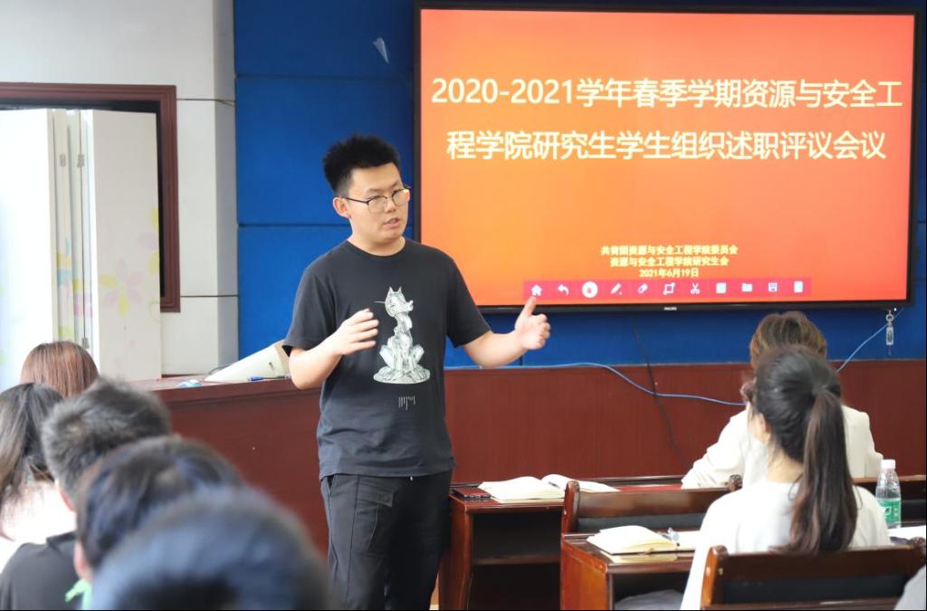 为保障我院研究生学生组织工作有序进行,更好地贯彻落实中南精神,我院于2021年6月19日下午15时在采矿楼224会议室组织开展本学期研究生学生组织述职评议会议,旨在全面了解和监督研究生学生组织本学期的学生工作,以促进学院各方面建设。参与本次会议并进行述职的学生组织有资安院研究生会、朋辈心理互助会研究生部、新媒体中心研究生部、研究生双创实践部,共青团动漫之家