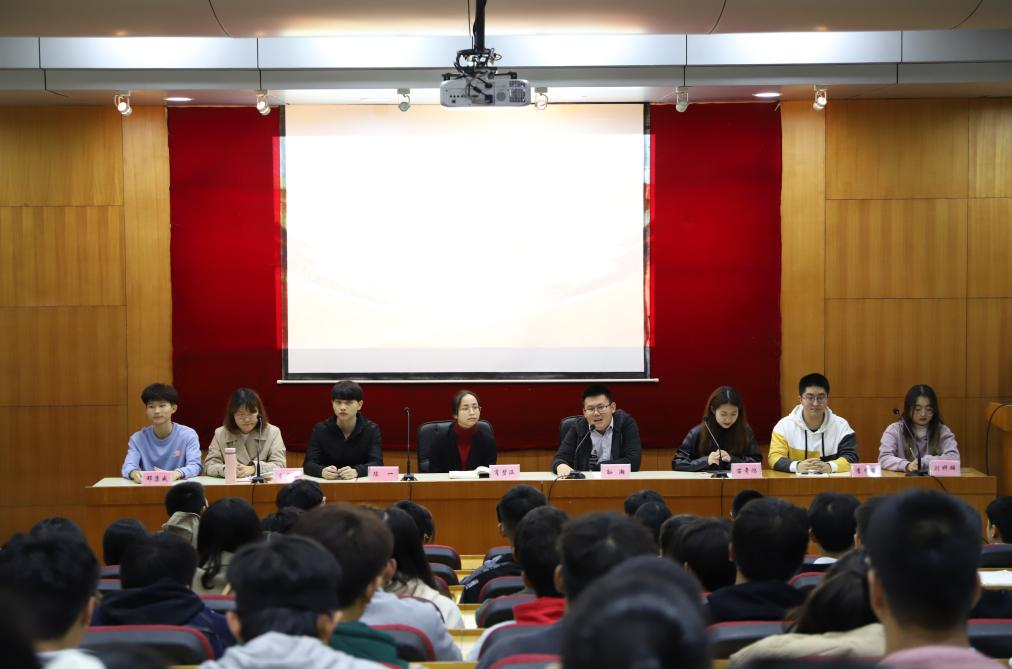学院学生组织主席团成员作自我介绍,并对各位干事提出了希望。其中学生会主席苗奇鸿同学为大家讲述魔术师与勺子的寓言故事,希望各位干部团结一心,为同学们服务,其他主席团成员也希望各位干事能够保持认真的态度、积极完成工作,并在工作中找到自己的归属感。最后,各部门干事以幽默的语言向大家介绍了自己的部门,见面会在一片欢声笑语中落下帷幕。