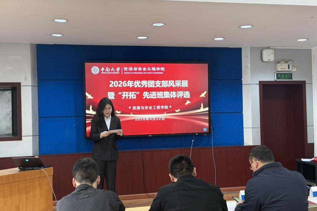 为进一步强化基层团组织建设,发挥优秀团支部与先进班集体的示范引领作用,营造争先创优的优良班风学风,4月22日下午,学院于岳麓山校区采矿楼224顺利开展2026年优秀团支部风采展暨“开拓”先进班集体评选活动。活动邀请了各年级辅导员、班导师代表、团委指导老师、学生代表等担任评委,来自学院各专业、各年级的11个班级代表参加评选。本次活动由团委组织部斯琴高娃主持。