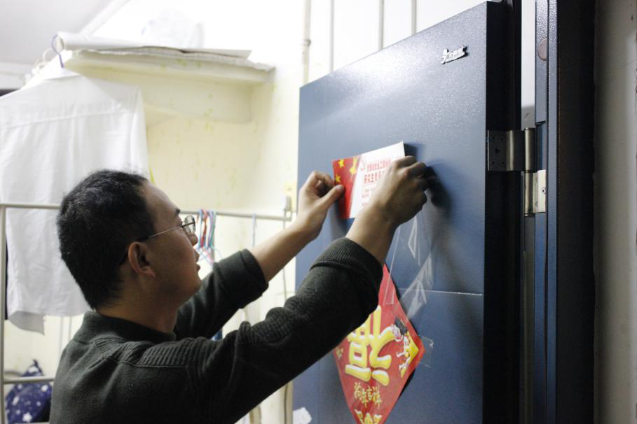 14舍428是此次挂牌的第二间宿舍,于老师了解到该寝室有三名党员和一名团员,便鼓励该同学积极向党组织靠拢,也要求党员同志作出表率,并强调:“给党员宿舍挂牌,就是要敢于亮出党员身份,增强党员荣誉感,履行党员义务,志愿在同学中发挥模范带头作用,促进文明寝室创建,树立优良学风,建设和谐校园”。同时,于老师建议同学们建立寝室公约,搞好宿舍内务,营造安全、文明、整洁、和谐的宿舍氛围在平时的学习生活中,党员应和同学们保持良好的关系,加强与同学的感情交流,留心观察,及时发现帮助解决同学在生活学习中遇到的困难