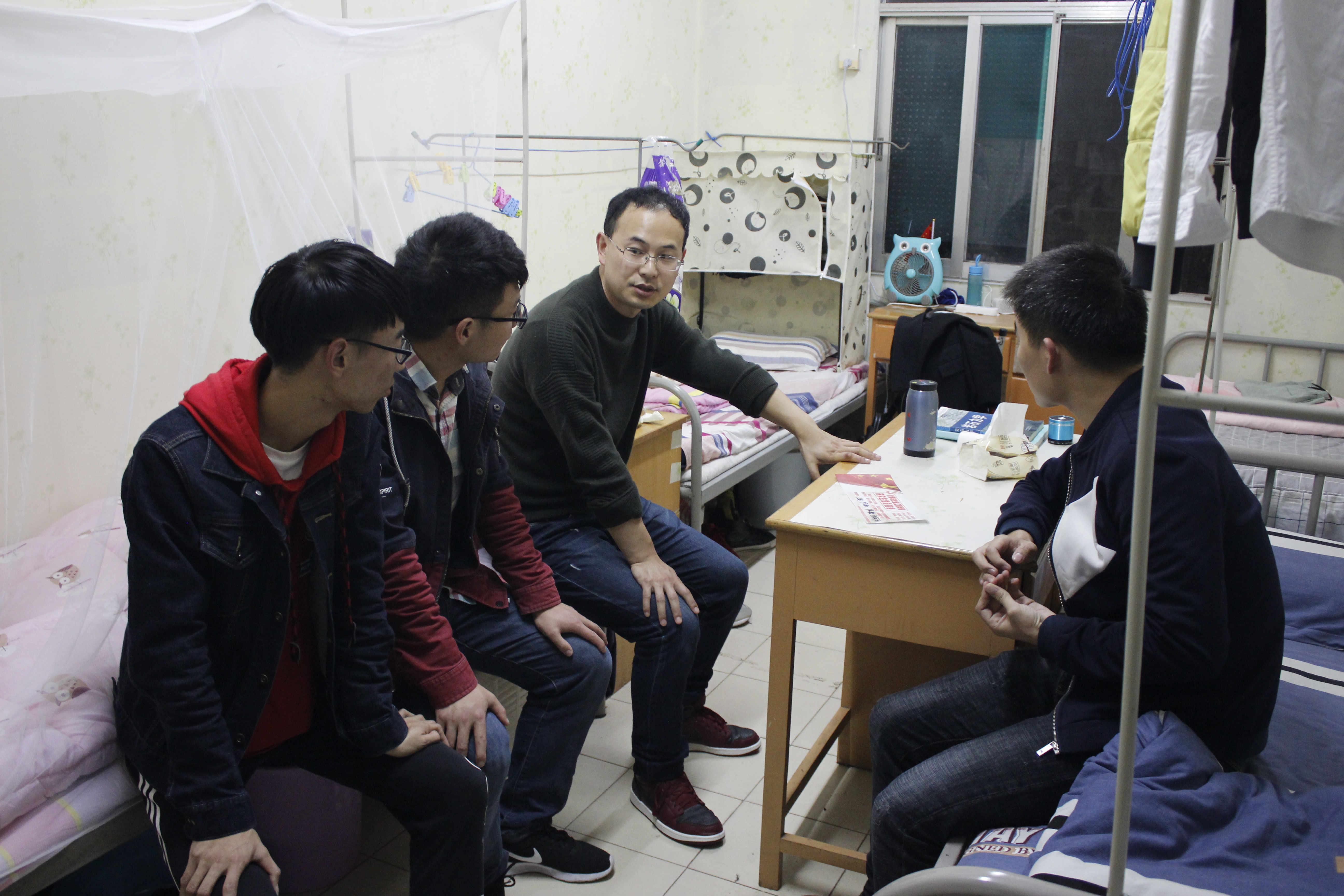 在研北513,推开宿舍房门,一幅干净整洁的宿舍画面不禁让随行人员竖起大拇指,于老师对宿舍的良好环境和团结氛围赞许有加。在与宿舍党员交流中,于老师详细了解同学们近来的学习生活情况,提醒同学们多注意天气变化,已入深秋,做好防寒保暖。