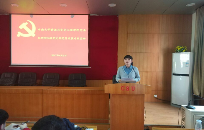 本科2014级党支部在采矿楼301报告厅举行党员发展对象答辩评议会,支部书记兼2014级辅导员朱玮及支部所有学生党员出席会议,26名积极分子参加答辩。会议由陈芳同志主持。