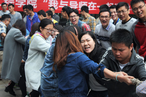 在采矿楼前坪举办了一场主题为“我与导师在一起”的拔河比赛,动漫之家