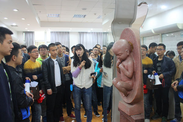 2016级全体研究生新生在研究生辅导员于谦老师和朋辈互助队的带领下,前往湘雅医学院“生命教育基地”进行参观。