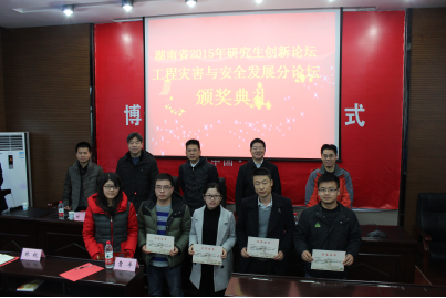 共同承办的2015湖南省研究生创新论坛工程灾害与安全发展分论坛,在经历了一个月的精彩学术交流之后,如期在我院采矿楼302报告厅举行了隆重的闭幕式。
