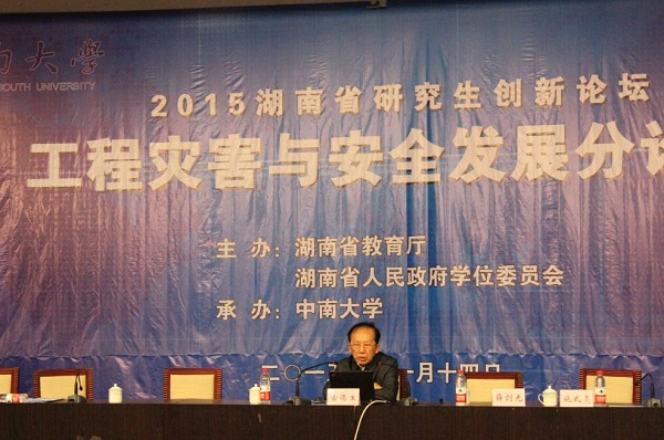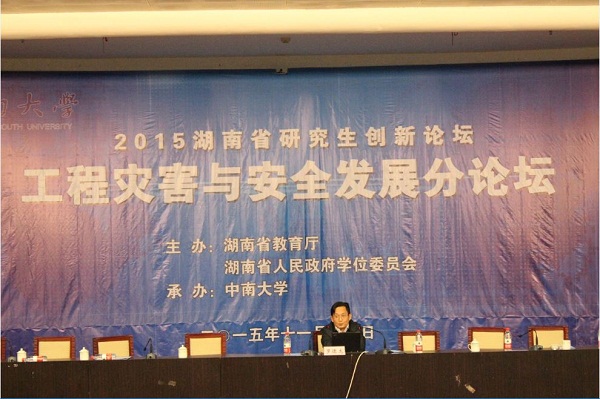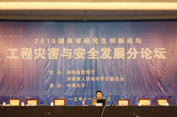 共同承办的2015湖南省研究生创新论坛工程灾害与安全发展分论坛,在我校科教大楼国际报告厅举行了首场学术报告大会。