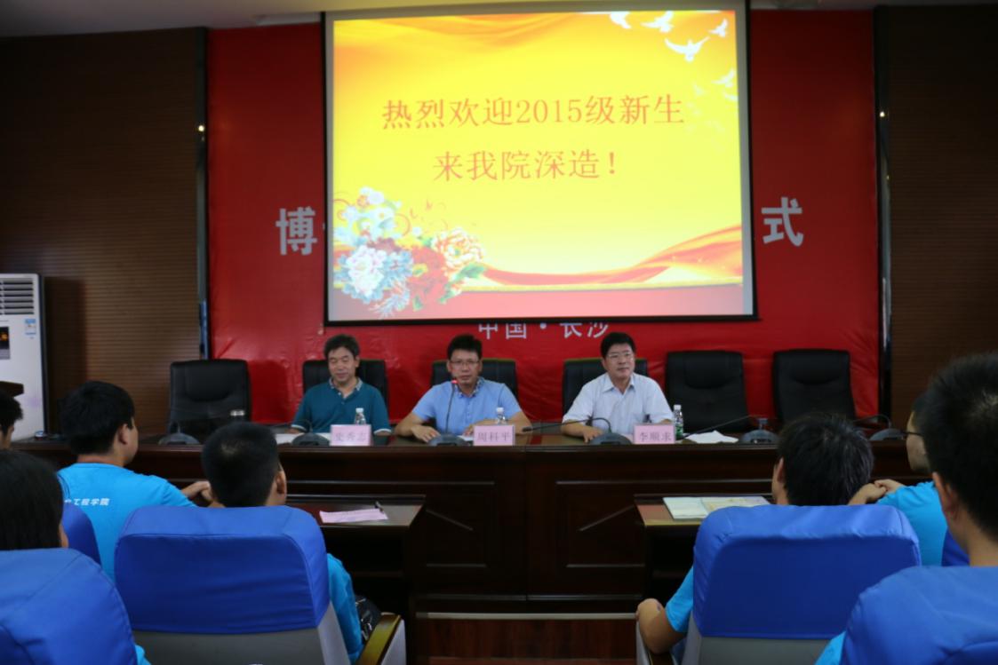 于校本部采矿楼302国际报告厅召开2015级研究生开学典礼暨入学教育大会,资安院党委书记李顺求书记、周科平院长、史秀志副院长、研工办李欢老师、秦俊老师以及2015级全体研究生出席了本次会议。会议由李欢老师主持。