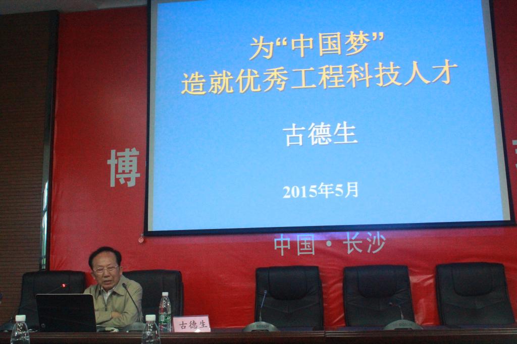 古院士特别叮嘱青年学生,要正确对待“名”与“利”,不能把金钱作为衡量个人尊严、人生成就的唯一尺度,要牢牢树立社会主义核心价值观,培养执着的社会责任感和强烈的爱国主义精神;要敬重学习国家功勋英模的精神和事迹,他们的奉献精神永远不过时,是支撑共和国的脊梁和灵魂。在对自己半个多世纪科研历程的深情回顾中,古院士认为科技事业是需要坚强意志的强者事业,是需要集体智慧的群体事业,是永远没有终点的永恒事业,是需要奉献精神的壮丽事业。他最后鼓励青年学生,要珍惜青春年华,多读书、多做事,把握好自己的人生方向,用心书写自己的精彩人生。