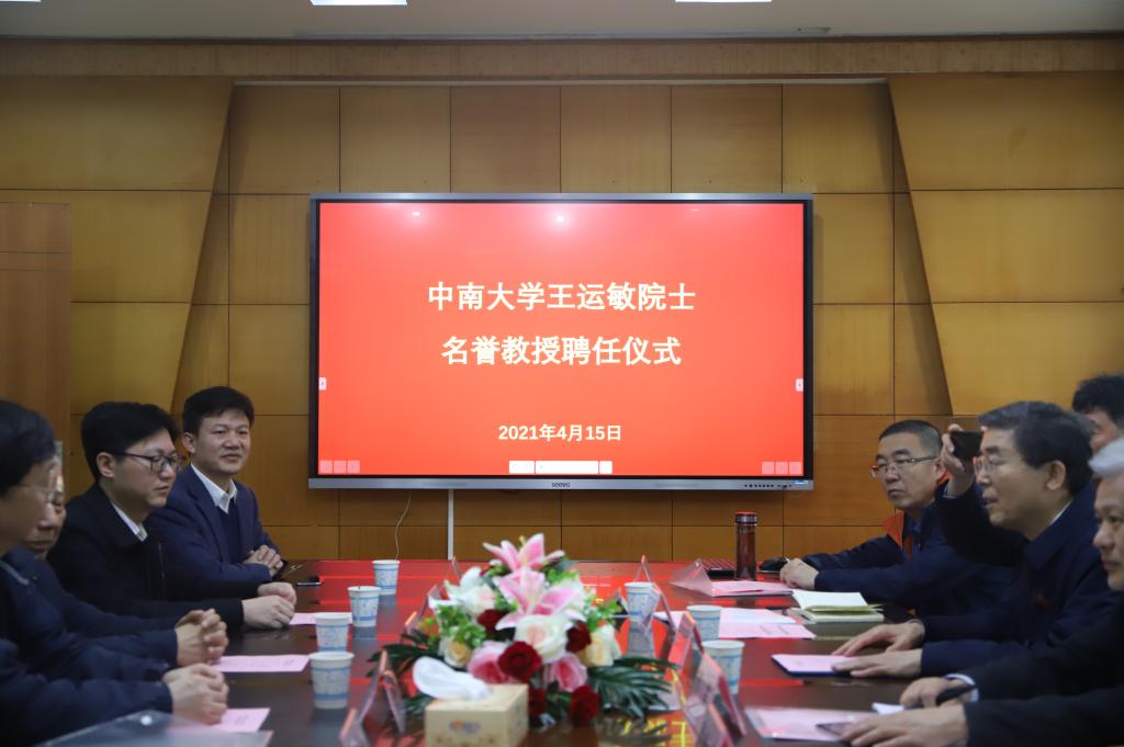 关于聘任王运敏院士为我校名誉教授的决定》,并由胡岳华常务副校长为其颁发聘书,授予校徽。