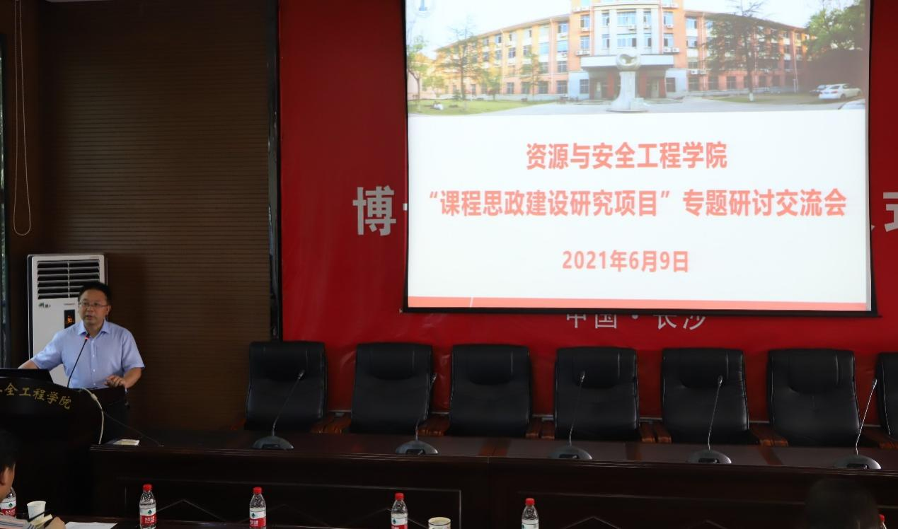 随后我院两位教师就课程思政建设项目进展情况、存在问题进行了交流。首先胡建华教授以《露天采矿技术》的绪论教学为例,阐述了如何在课程中将思政元素和专业知识相结合。从绿色采矿技术,引出“绿水青山就是金山银山”的先进理念,并从创新、协调、绿色、发展、共享五大发展理念的角度剖析专业内容,构建出既有专业特色,又有思政元素的综合性课程。接下来张舒老师分享了《安全学原理》课程教学中的一些创新,从专业知识点中发掘思政元素,挖掘教学内容中蕴含的哲学思想,以讲故事的形式将思政元素融入专业教学,实现专业知识和思政元素的有机融合,达到润物细无声的效果。随后,学院教学副院长黄锐从课程思政建设目标、具体实施方案、教学激励措施、教学保障条件等四个方面解读了我院“课程思政建设实施方案”。