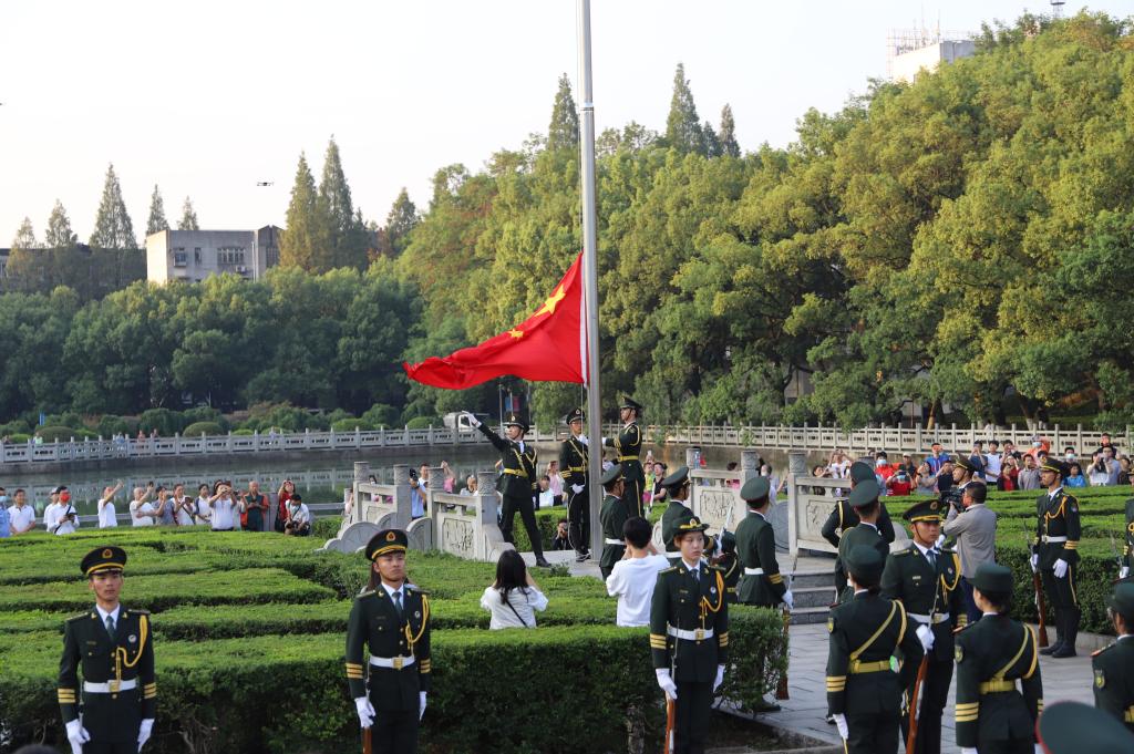 于校本部图书馆前坪举行国旗升旗仪式。动漫之家