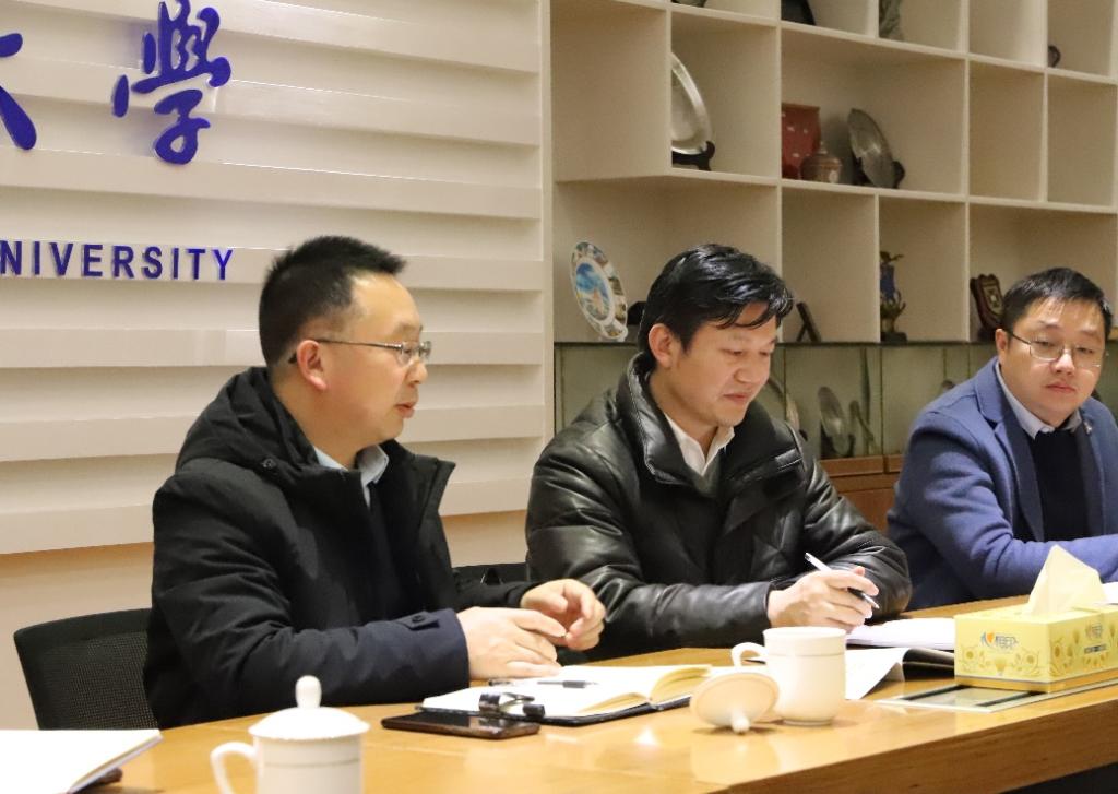 党委书记欧旭理、院长周子龙与副院长李地元带领学院十余位青年教师前往国际交流处和国际教育学院就学院国际交流发展和国际化办学问题进行领导小组会谈。