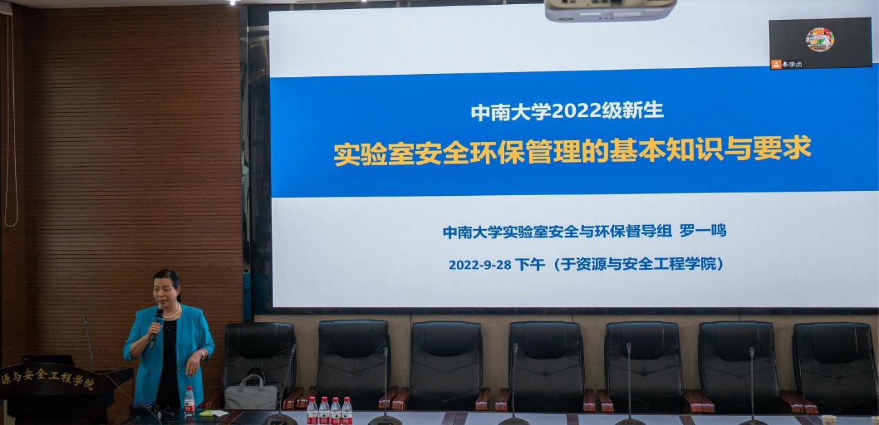 实验室安全与环保督导组组长罗一鸣教授主讲,培训会由学院党委书记欧旭理主持会议,学院分管教学实验室副院长尹土兵、教学实验中心全体老师,全体2022级新生参加了本次培训。