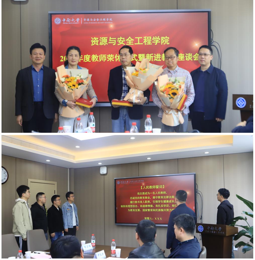 4月8日上午,学院在采矿楼222会议室举行教师荣休仪式暨新进教师座谈会。2023年度荣休教师唐礼忠、阳雨平、郭琼,新进教师朱泉企、陈怡帆、苏醒、徐宇、聂峰华、李三百以及学生代表参加,全体院领导出席会议,座谈会由学院党委副书记岳龙主持。