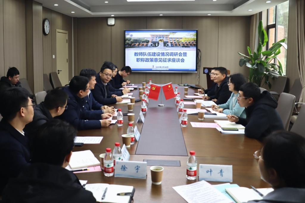 人才工作办公室(博士后管理办公室)副主任刘华森、人事处副处长张仕璟一行到我院开展教师队伍建设情况调研会暨职称政策意见征求座谈会。