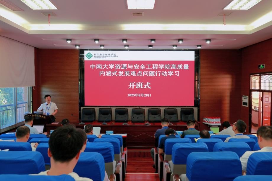 8月28日上午,学习班开班仪式在采矿楼302报告厅正式启动。开班式由学院党委书记秦进主持,院长周子龙发表动员讲话,他提出:“本次行动学习不设标准答案,只求破解学院发展中的‘硬骨头’。”项目聚焦学院核心挑战,创新采用“数字人导学+知识学习+引导共创+顶尖同行院系面对面+行动方案初拟+专家点评+校领导共识”的闭环学习模式,推动中层干部在真实问题场景中锤炼领导力,形成可落地的解决方案,共绘学院高质量发展新蓝图。